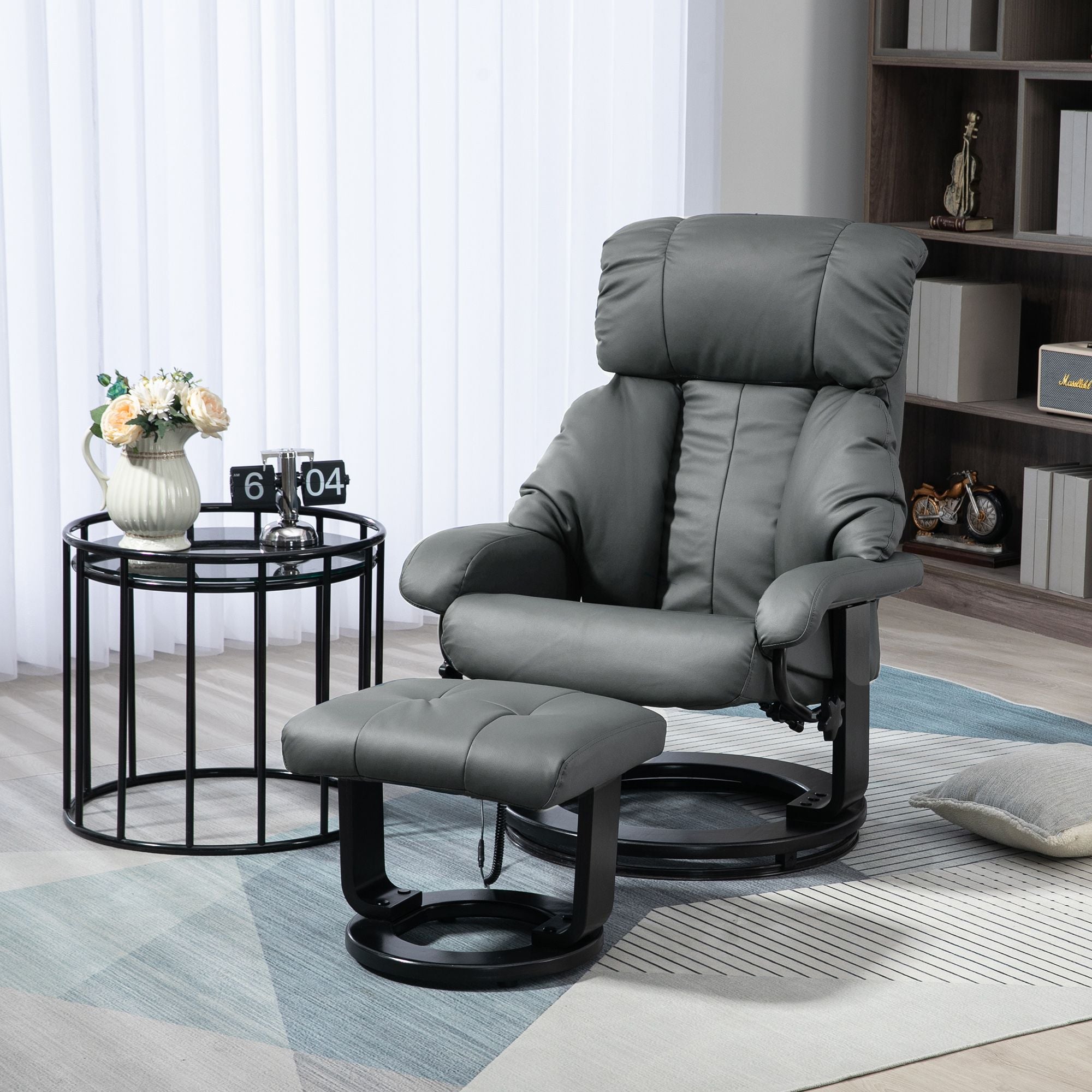 - - 10-point vibration massage on the back, lumbar, seat cushion, and footstool