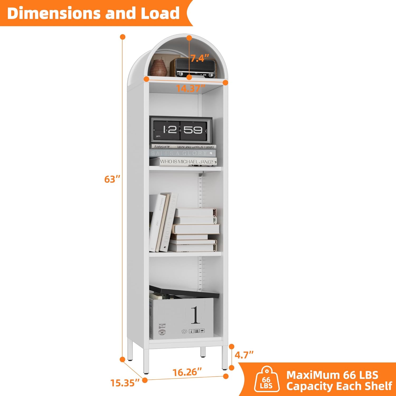 Arched Metal Display Bookcase with Glass Doors – Modern Storage Cabinet with Adjustable Shelves