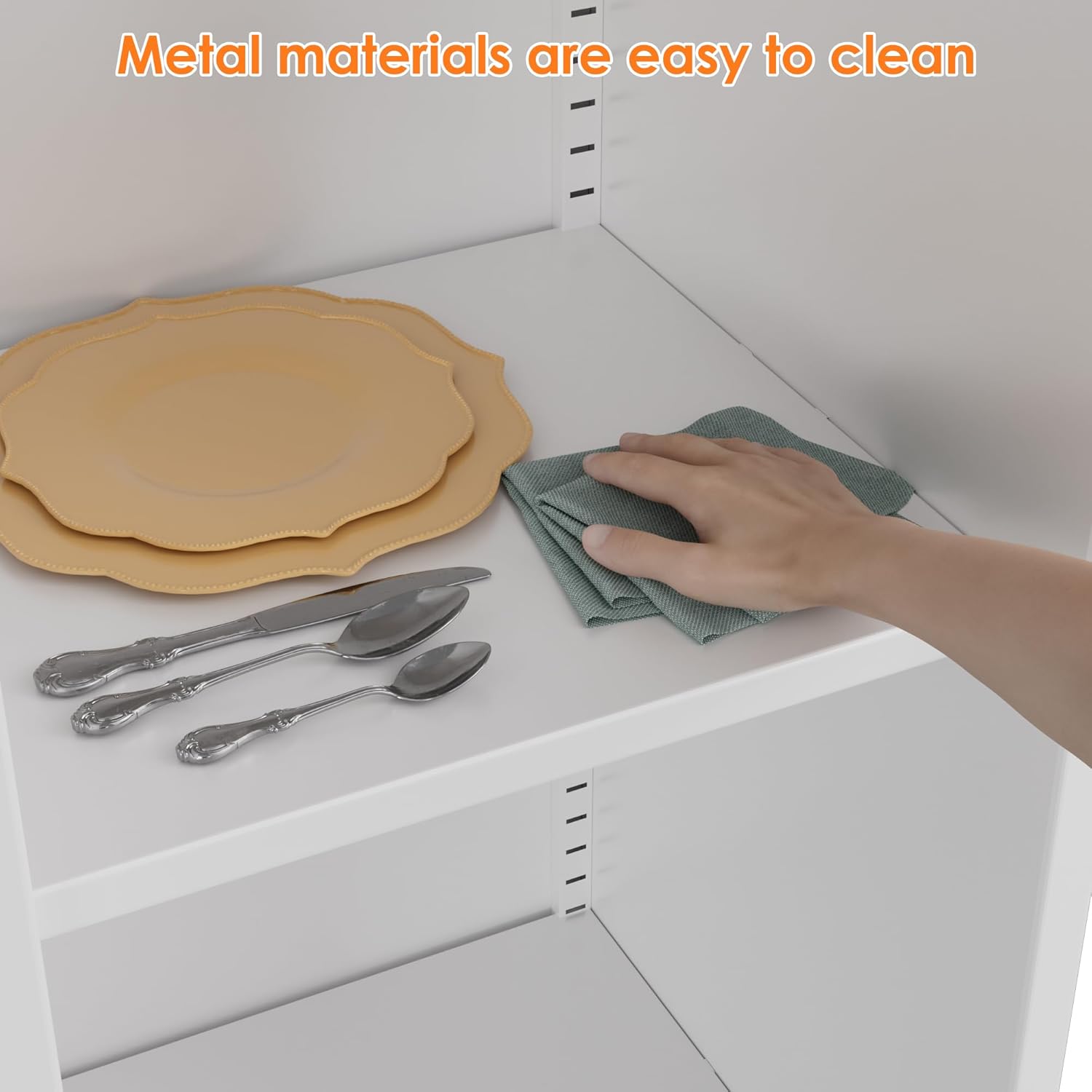 Shelves can be repositioned to fit items of different heights, providing customized organization.
