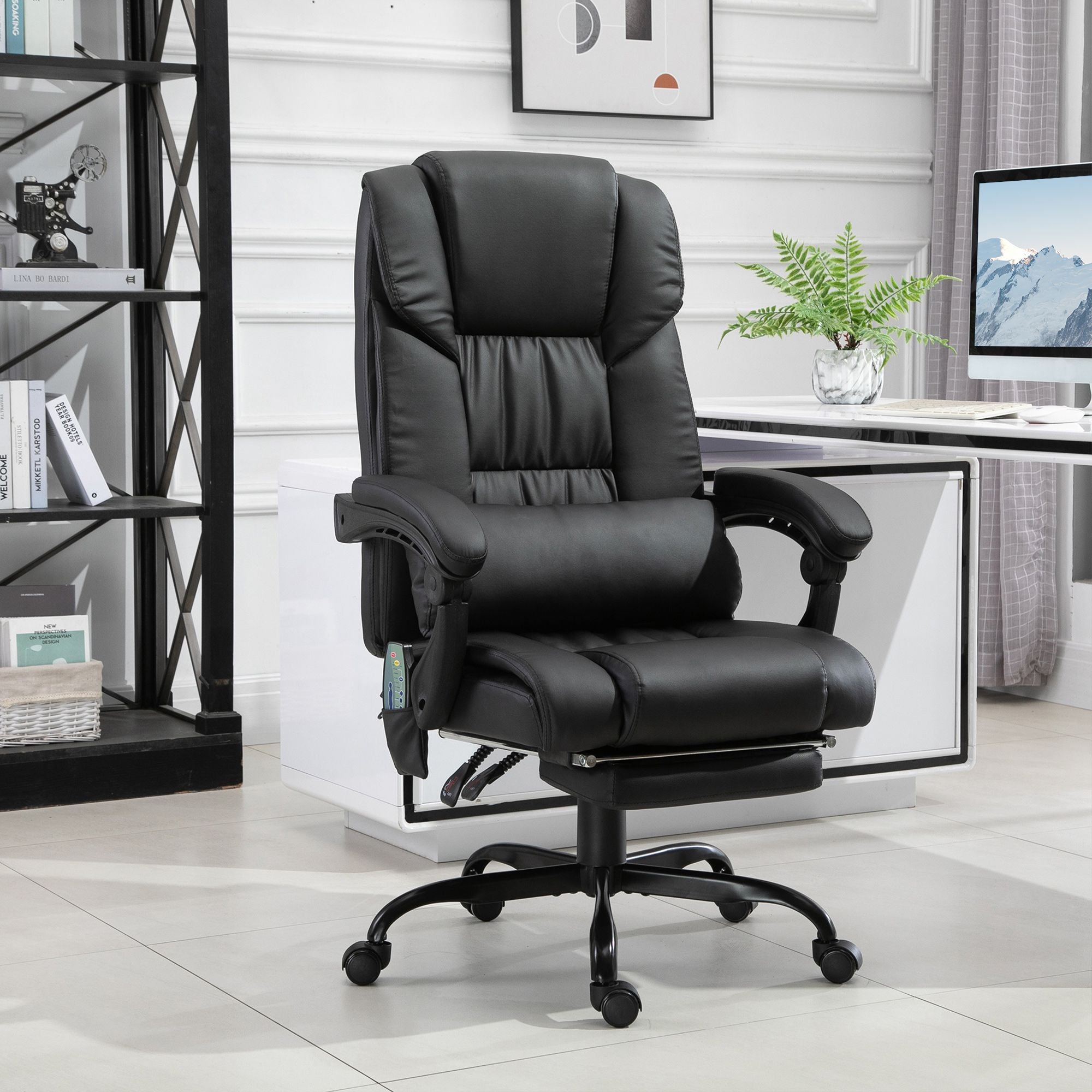 - Massage After a Long Day: This executive office chair offers a six-point vibration massage with five modes and a lumbar pillow. It has two massage points each for shoulders, waist, and hips, and you can adjust the massage settings by remote control.