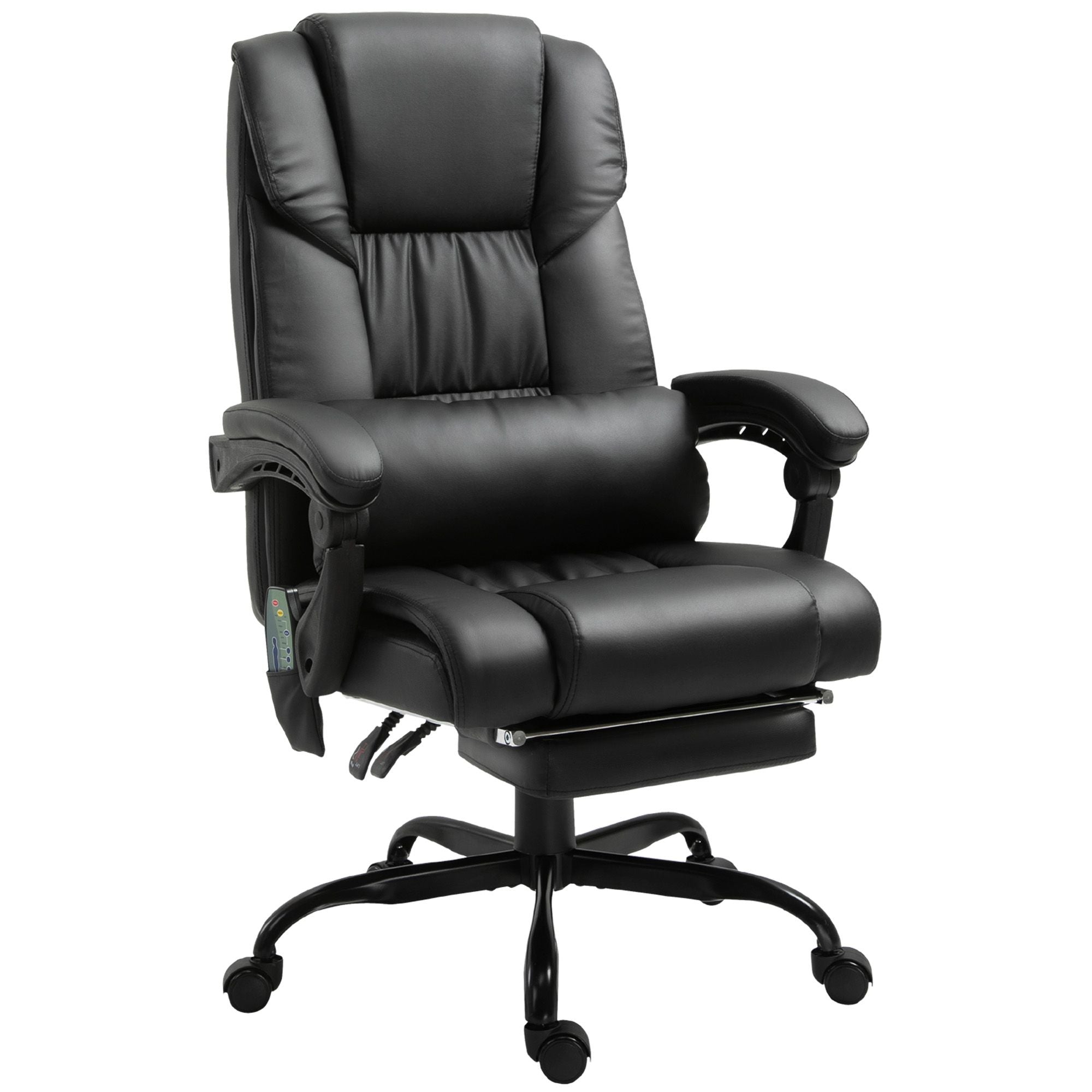 Give yourself a professional-feeling massage in your own home with this ergonomic chair from Vinsetto. Presented in executive design, the faux leather office chair has six different massage points: two on the shoulders, two in the lower back, and two on the thigh area. Height can be adjusted via the lever below the work chair. The back angle can be adjusted up to 130 degrees, with a footrest that can be smoothly pulled out for extra relaxation.