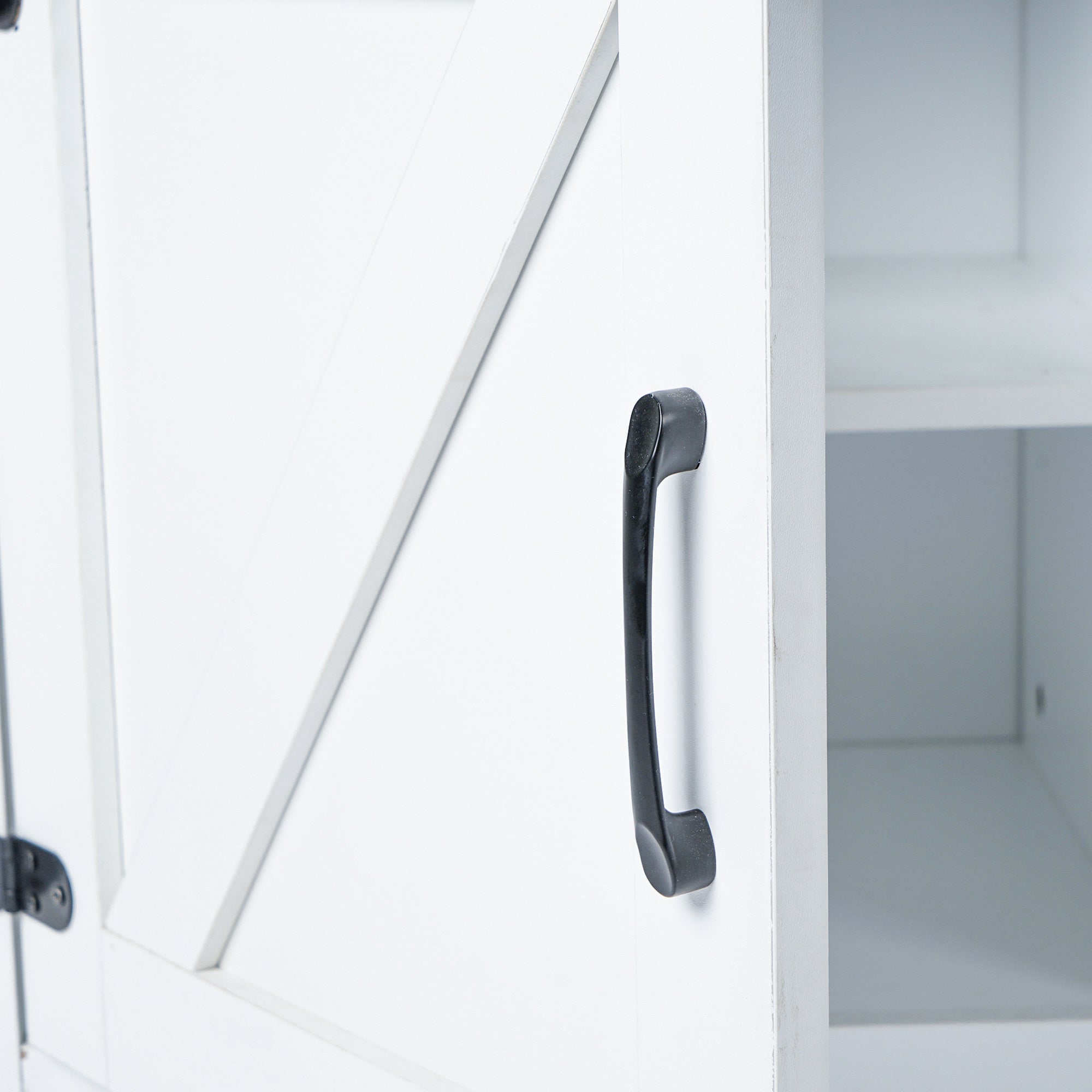 Great Wood Textured Surface Table:Made from high-grade certified Particle board for long-lasting construction. Featuring barn door inspired cabinet fronts for a country feel.